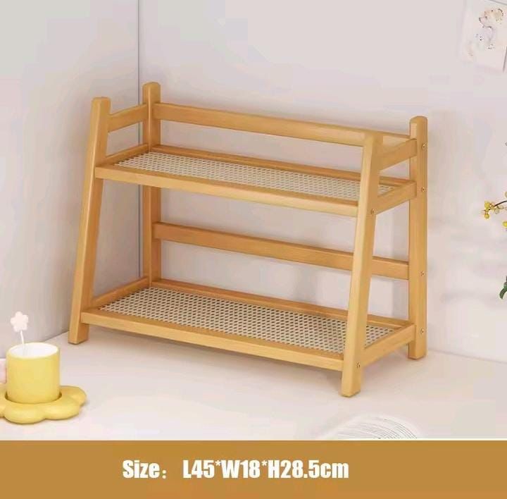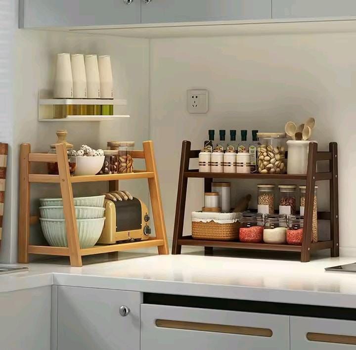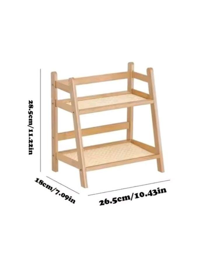Bamboo 2 Tier Plant Stand Rack Flower Pot Holder Kitchen Spice Caddy Rack Desktop Organizer Coffee Bar Counter Display Shelf